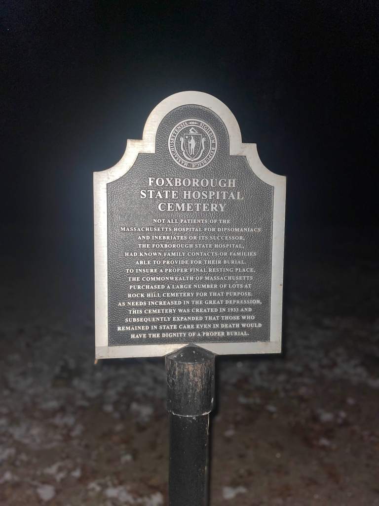I felt an early morning call to walk with providence and I made my way over to the property, letting my intuition take the wheel and guide me. The Sun Chronicle article I read said that one of the State Hospital’s old groundskeepers, George Dodge (1928-2012), was a resident of the street that the property is located on. He felt like the patients buried there deserved better that to be forgotten, he would mow the lawn and take care of the general upkeep after the closure. Legally, the properties became the responsibility of the Division of Capital Asset Management and Maintenance (DCAMM). When asked about the status of the cemeteries, former deputy director of the Division of Capital Asset Management Robert Cohen noted “we’re hoping a developer will take care of the maintenance and be responsible for the upkeep,” all the way back at the turn of the century 2000. He said they would “like to see it kept as a better maintained location,” and add a couple amenities, like a few bushes and a plaque. The plaque is there, the bushes are there. The graves do not appear to be maintained, but this surface level of respect is still a win. Whose responsibility is it to take care of these cemeteries? Can private developers be trusted to maintain burial grounds or does that obligation fall to family members and neighbors when the Commonwealth doesn’t directly handle it?